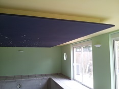 Piscine intérieure réalisée en Eure-et-Loir (2011) avec sas de passage de l’habitation à la piscine. Bassin 7m x 4m avec volet immergé, liner 85/100ème et nage à contre courant. Traitement de l’air, déshumidificateur SIROCCO 110 © Zodiac avec appoint éléctrique.
